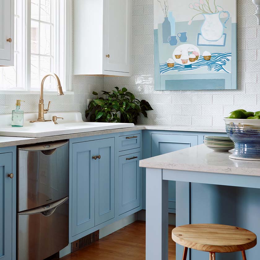 We transformed a tight galley kitchen into a bright, functional space full of charm. Featuring Shiloh cabinetry, beadboard details, and smart storage solutions, this coastal cottage kitchen balances beauty, flow, and family living.