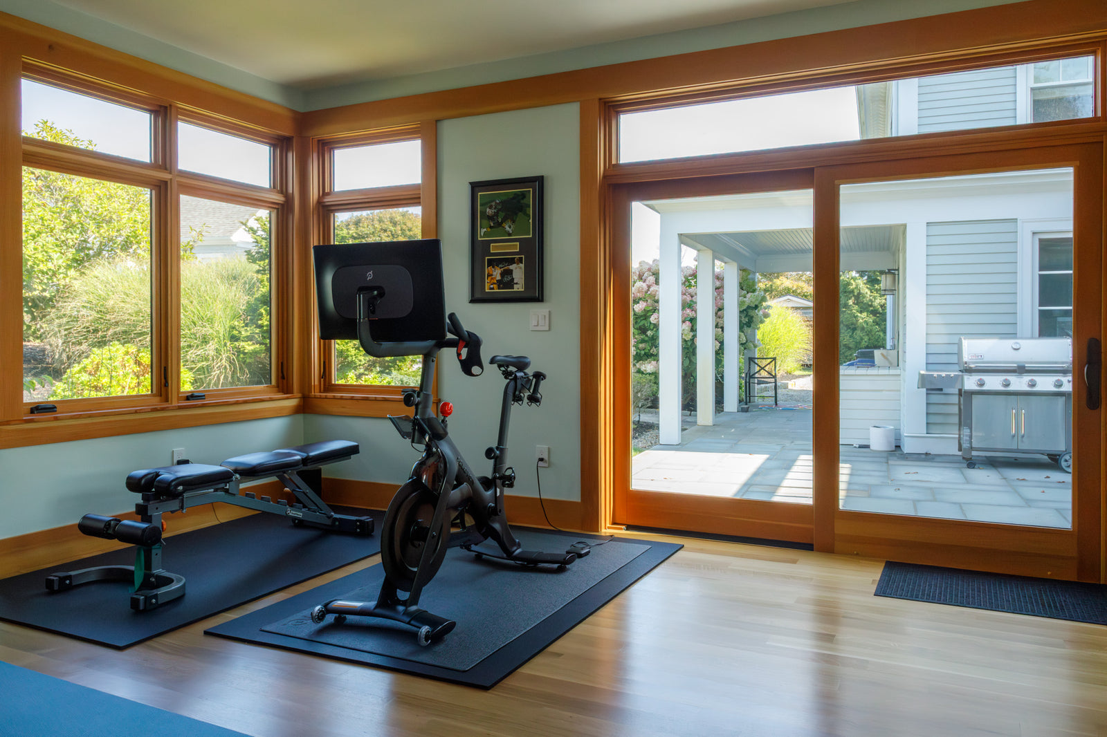 The addition also includes a fully equipped home gym, featuring a Marvin unit with switchable privacy glass that transitions from clear to frosted with the touch of a button. It’s a sleek, modern solution that balances function and design.