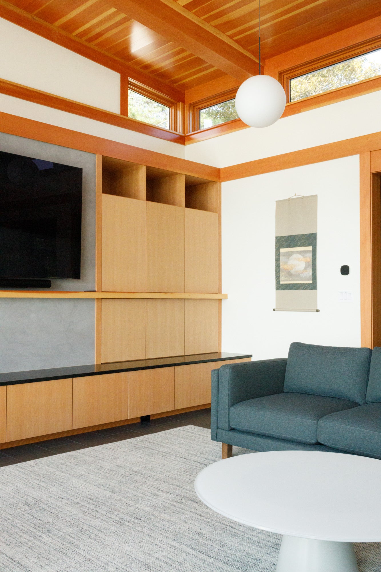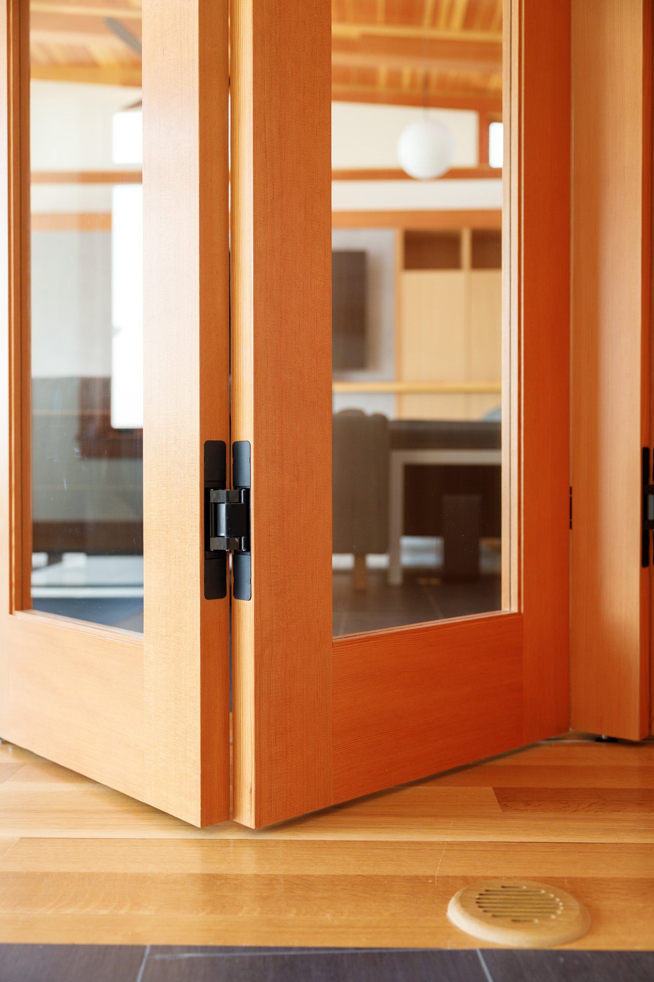 Every detail was designed with intention and quality in mind. The Rocky Mountain Builder Series hardware on the interior doors adds a subtle, tactile luxury that complements the wood tones throughout. One of the project’s standout features is a custom bifold door built by Heirloom Builders using TruStile panels and HAWA sliding solutions, giving the homeowners the option to separate the main living area from the new addition when guests visit—adding privacy without sacrificing style.