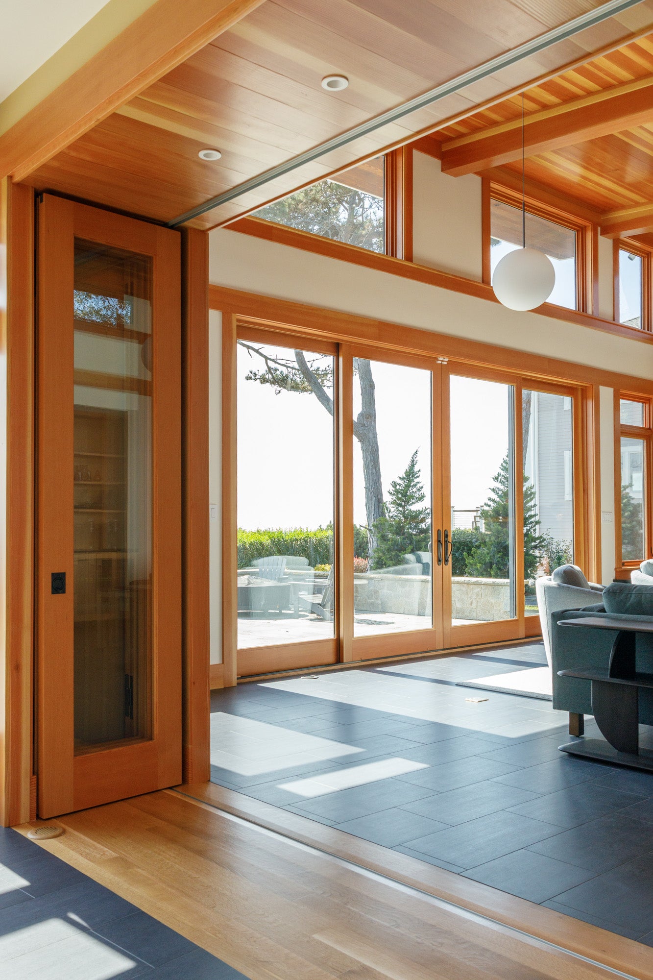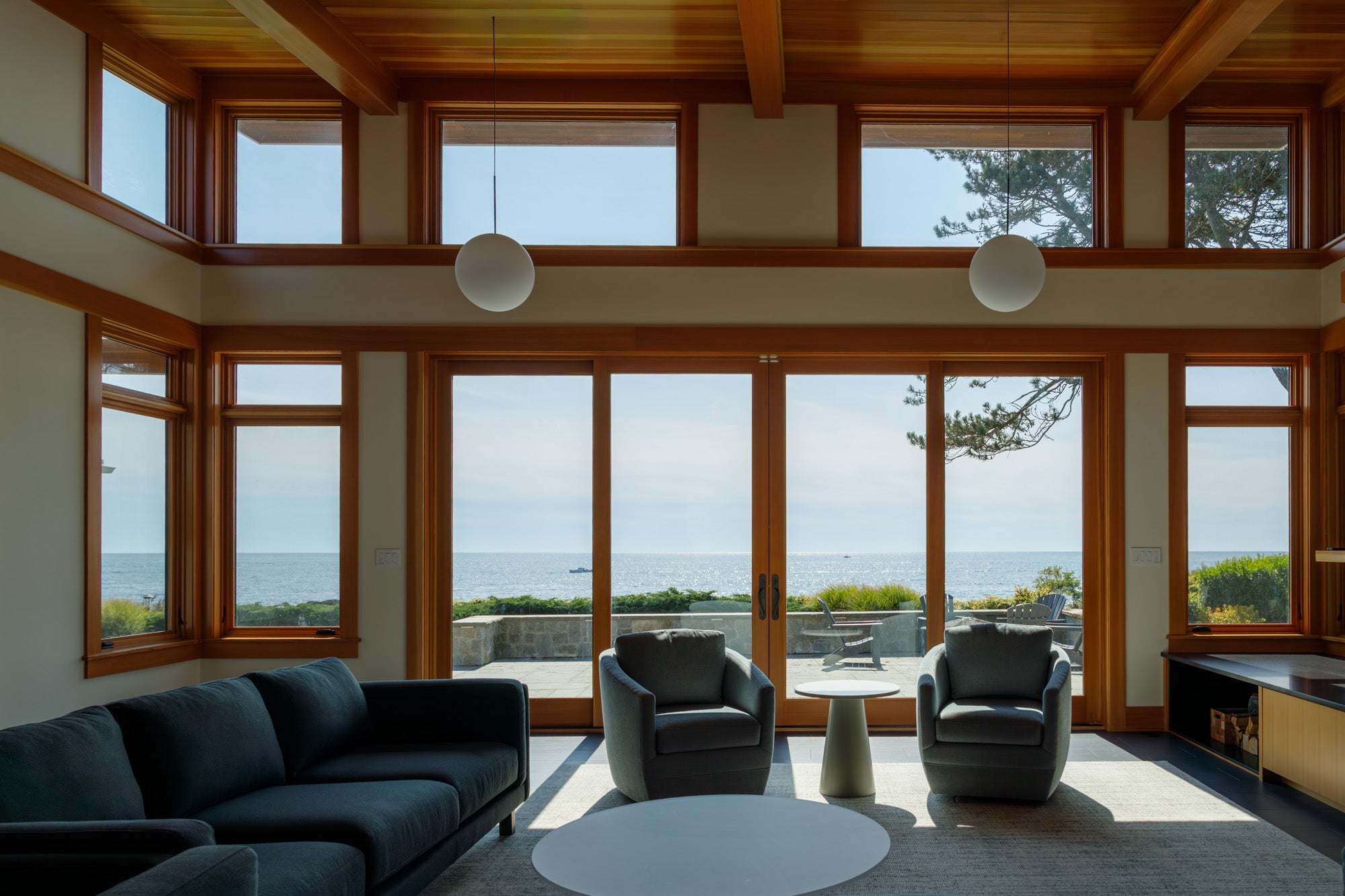 With its mix of high quality natural materials, a modern and complimentary combination of Trustile and Marvin windows and doors, and expertly crafted custom millwork, this project captures the warmth and sophistication of modern coastal living. Grand Banks Building Products was proud to partner with the talented team at Heirloom Builders to supply the TruStile doors, Rocky Mountain hardware, CVG Fir millwork, and Marvin Signature Ultimate windows and doors that made this ocean-view addition truly unique and timeless for this family and generations to come.